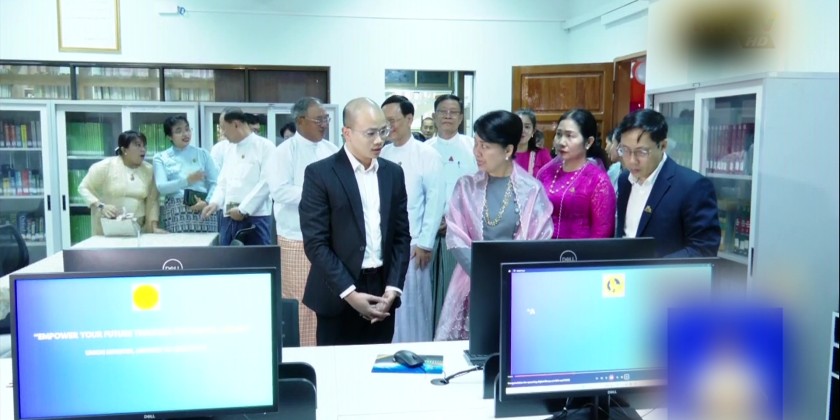 After launching the Digital Library, the Union Minister and party viewed around the facility. The Digital Library project is set to be inititated at University of Foreign Languages (Yangon) and Yangon University of Education, under the Digital Transformation in Education program.