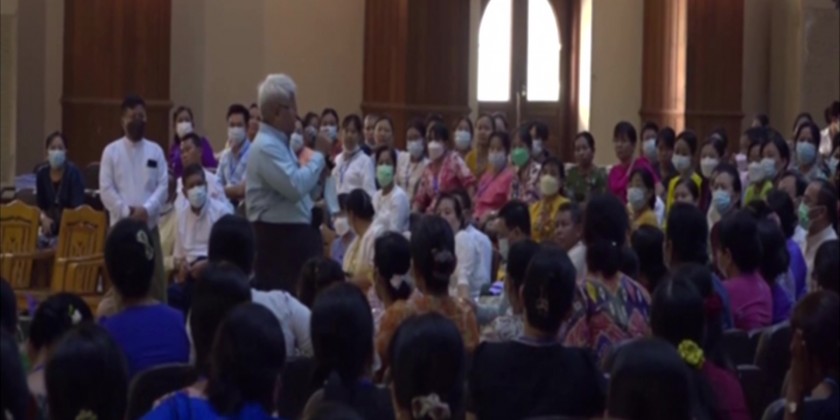 The Union Minister later visited Yankin Education Degree College and met with the trainees of first year students for the Bachelor of Education Degree.
