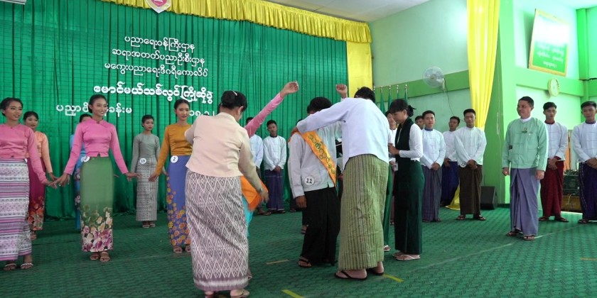 This fresher welcome ceremony included entertainment programmes and prizes were awarded by the Chief Minister and many other officials. He also provided 1.5 million Kyats for teachers and students at this Education Degree College.