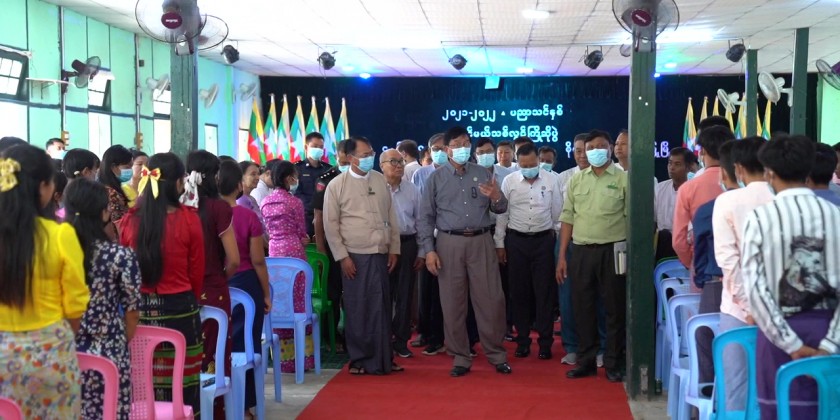 Magway Region Chief Minister U Tint Lwin attended the 2021-2022 academic year fresher welcome ceremony at the Agriculture Institute in Pwintbyu Township.