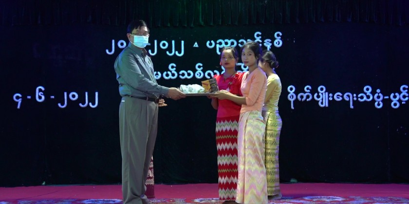 The ceremony continued with providing 500,000 Kyats for the freshers and presenting awards and sports gear to outstanding students in the 2019-2020 academic year.
