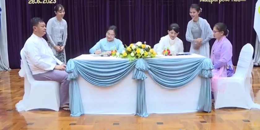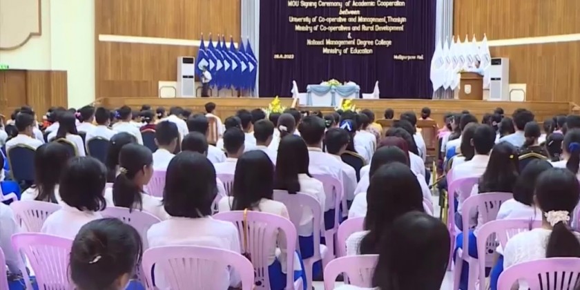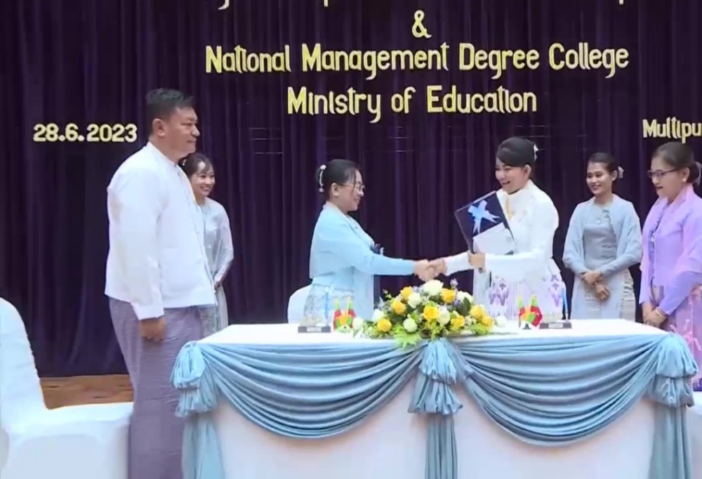 MoU signing ceremony of academic cooperation between the University of Co-operative and Management (Thanlyin) under the Ministry of Co-operative & Rural Development and the National Management Degree College (NMDC) under the Ministry of Education was held at the University of Co-operative and Management (Thanlyin) on Wednesday.