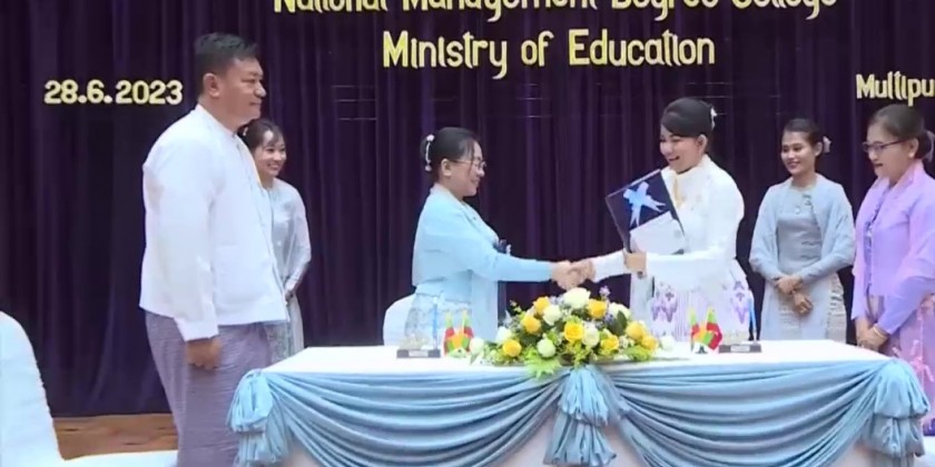 Under this MoU, teachers and students from the University of Co-operative and Management (Thanlyin) and the National Management Degree College will exchange knowledge and experiences – also, courses will be offered free of charge for the students.