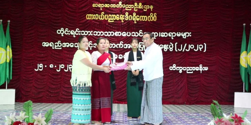 And, the Chief Minister presented certificates of completion to the teachers. The closing ceremony continued with stage performances by teachers and students. It came to an end with presenting cash award of 200,000 Kyats to the teachers and students for their stage performances.