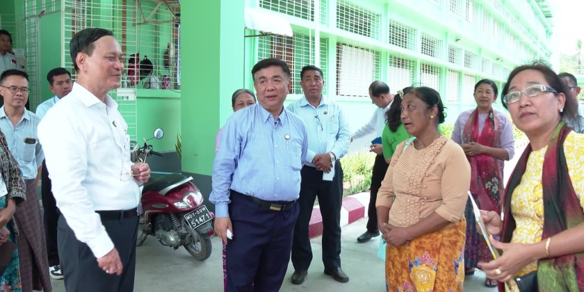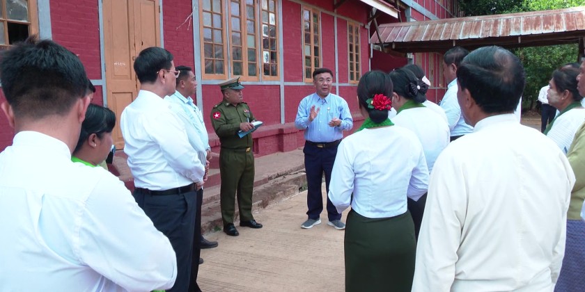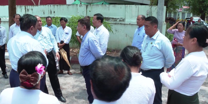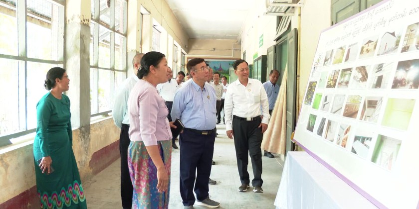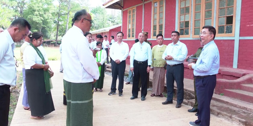 Union Minister for Education Dr Nyunt Pe accompanied by Deputy Ministers, Sagaing Region Chief Minister U Myat Kyaw and many other concerned officials inspected universities, colleges and basic education schools in Sagaing Region on April 23rd.