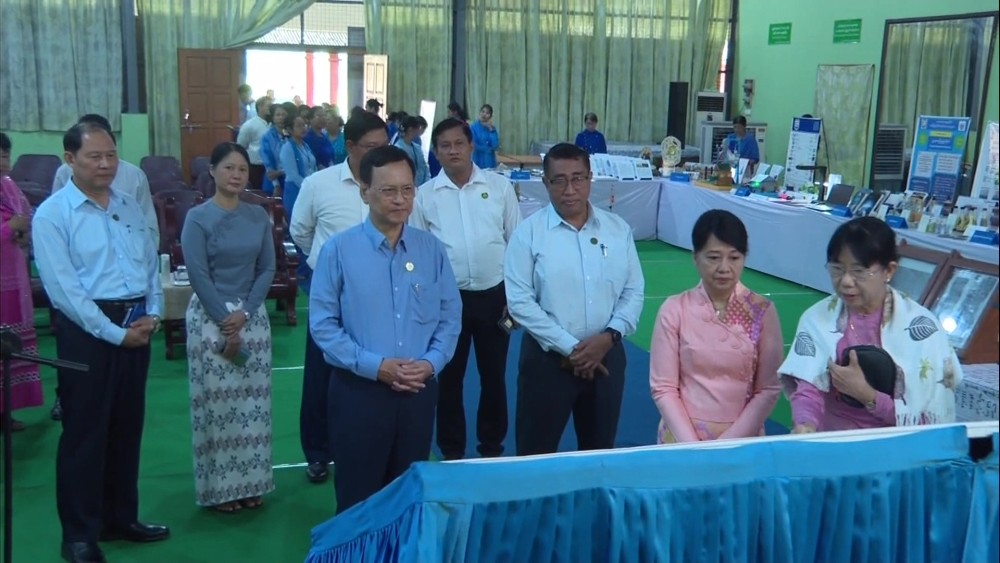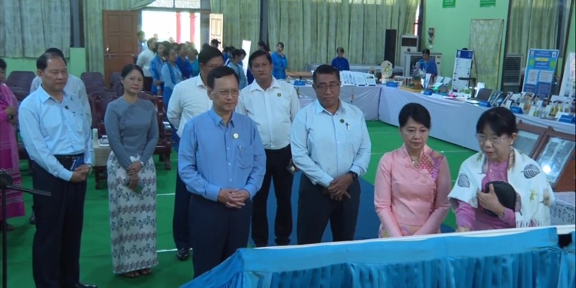 Union Minister for Education Dr. Chaw Chaw Sein accompanied by Deputy Ministers and concerned officials visited Yadanabon University in Mandalay Region on 3rd October. There, the Union Minister and party oversaw the extracurricular activities and posters and observed Distance education students taking exams.