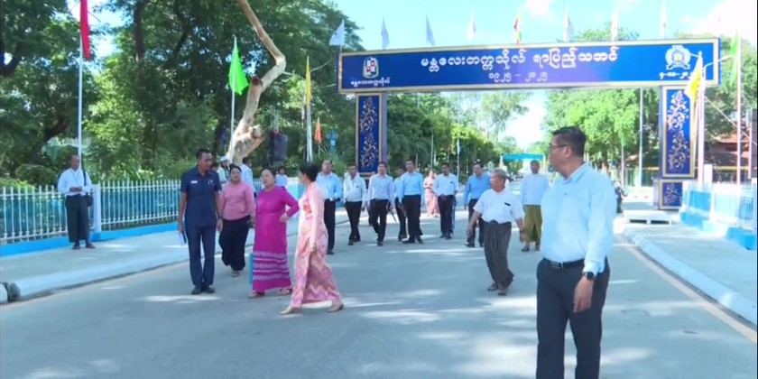 Subsequently, the Union Minister and party proceeded to Mandalay University and oversaw the preparations and rehearsal performances for the centenary celebration of the Mandalay University.