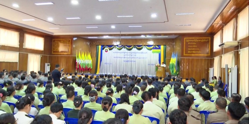 Jointly organized by the Anti-Corruption Commission and Ministry of Home Affairs, awareness talk on anti-corruption was conducted at the meeting hall of the Ministry of Home Affairs in the morning on 7th of May and attended by SAC member Union Minister for Home Affairs Lt-Gen Yar Pyae, Chairman of Anti-Corruption Commission U Sitt Aye, Deputy Minister MaJ-Gen Toe Yi, commission member U Kyaw Soe Lin, officials and staff members.