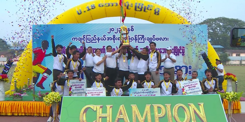 At the event, Waing Maw Township team beat Myitkyina township team 1:0. It was followed by the prize awarding ceremony and the State Chief Minister, the State Ministers and officials presented awards and honouraria to 1st, 2nd and 3rd winning townships, the best player awards for the event as well as certificates of honour to departments and organizations who contributed their efforts for the football match.