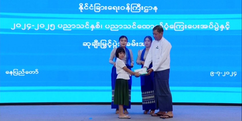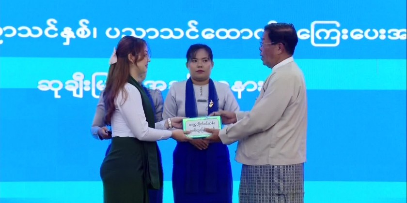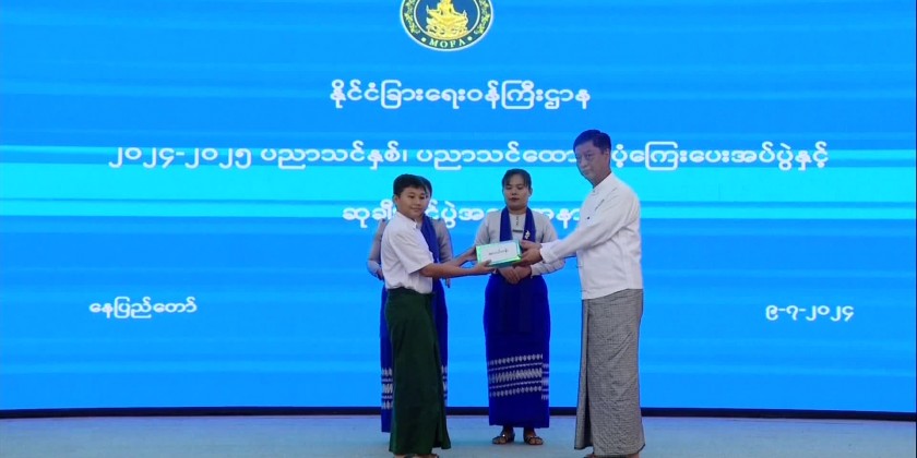 This ceremony at the hall of the Ministry was attended by Deputy Prime Minister Union Minister U Than Swe, Deputy Minister for Foreign Affairs and many other concerned officials and invited guests and students.