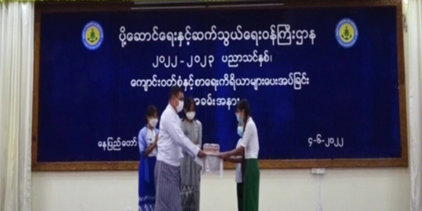 The Ministry of Transport and Communications provided school uniforms and stationeries to the children of the ministry's affiliated department employees who are attending primary, middle and high schools for the 2022-2023 Academic Year in Nay Pyi Taw on Saturday.