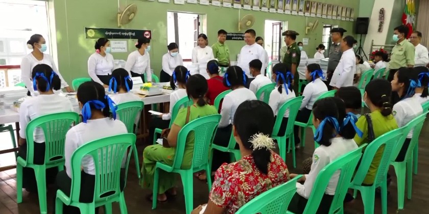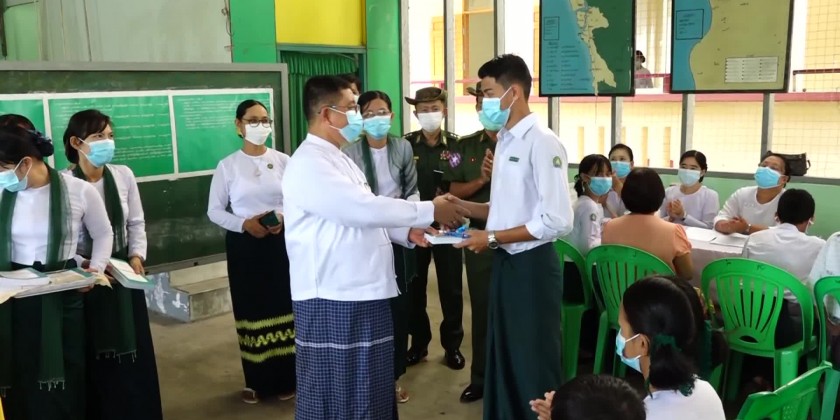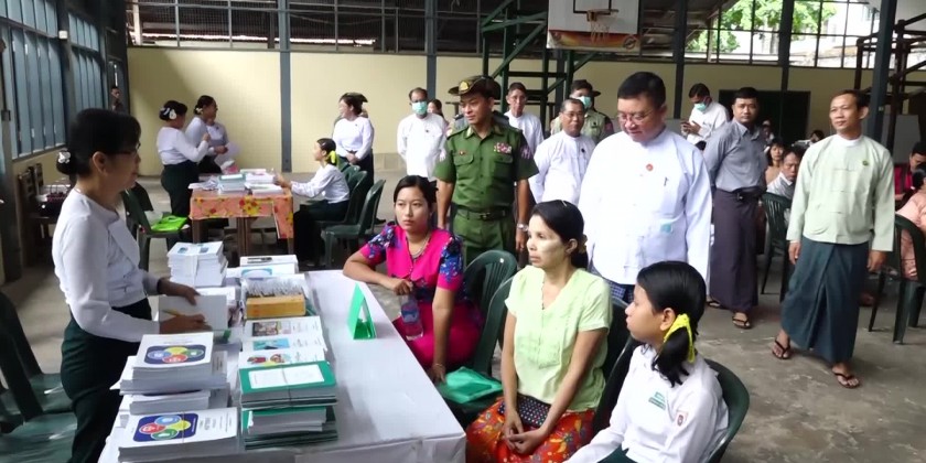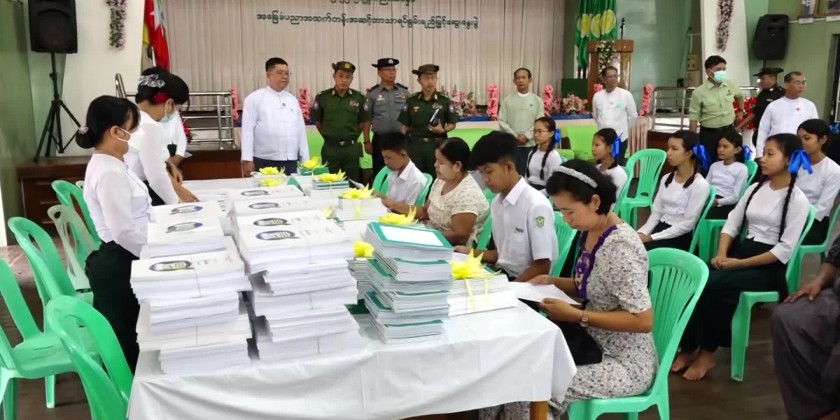 In Mon State, for 2023-24 Academic Year, school enrollments activities are being proceeded for every school-aged children to access learning opportunities and state chief minister inspected the school enrollment activities for 2023-24 Academic Year and state chief minister, state minister and district administrator provided the school textbooks, exercises, uniforms for primary students and stationeries to the students.