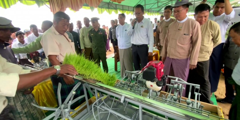 Efforts for agricultural development: Bago Region CM attended demonstration of rice transplanter