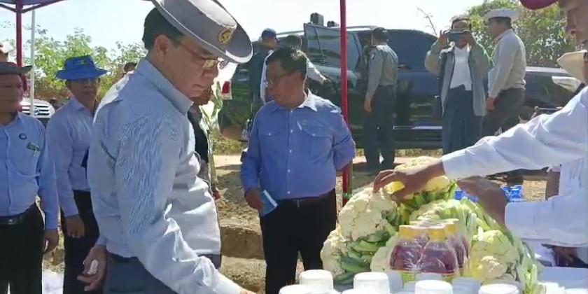 Next, the Chief Minister inspected the construction works of 2-storey extended building of Nattalin People’s Hospital and gave necessary instruction. At the Too Kan Village in Gyopingauk Township, the Chief Minister inspected thriving commercial plantation of cauliflower and gave necessary instruction to the officials.