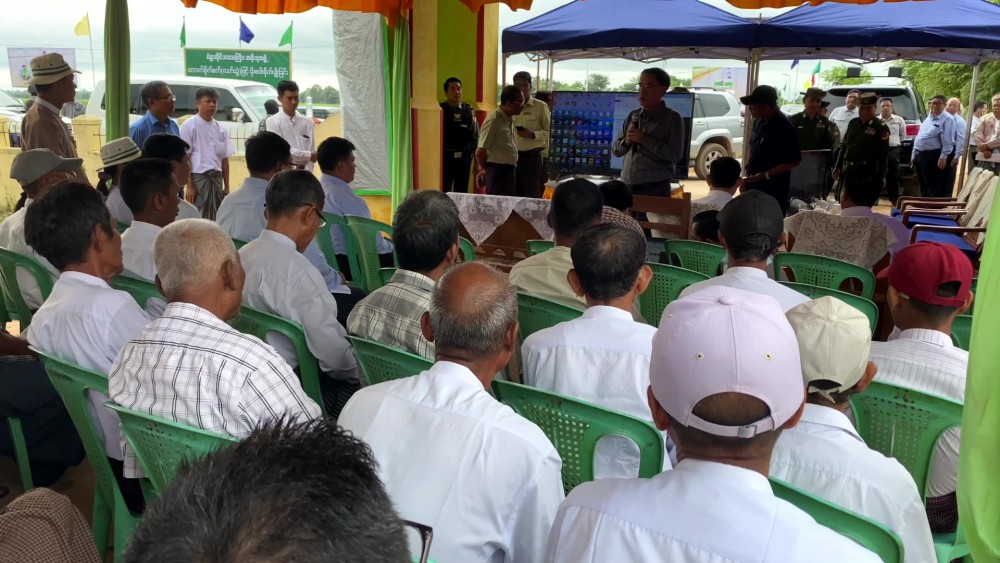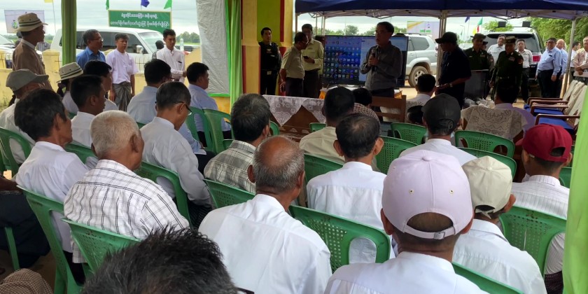 In Myaung Zon village, the Chief Minister met with local farmers and urged them to use the systematic way from conventional way in cultivation, measures undertaken by the State Economic Promotion Fund, and to make preparations for summer paddy irrigation.