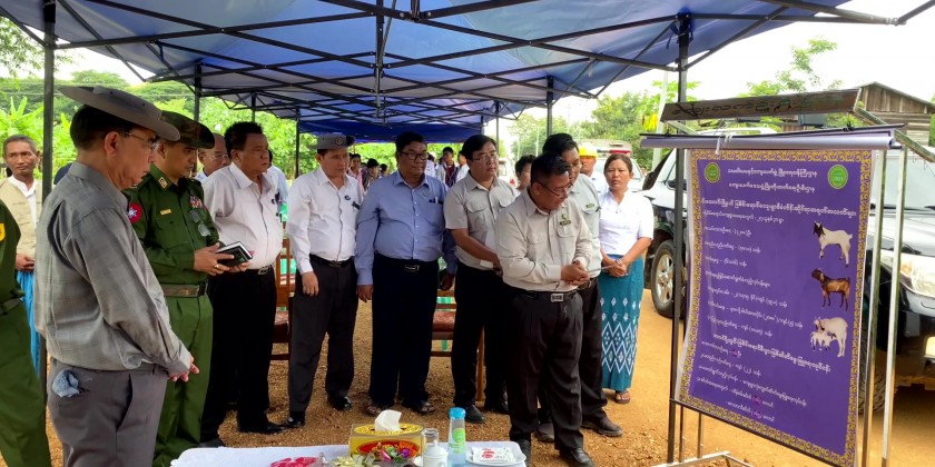 The Chief Minister and party then arrived at Taung Poh Kwin Smart Village where the Emerald Green Project is being implement in Pandaung Township and provided fund for goat farming.