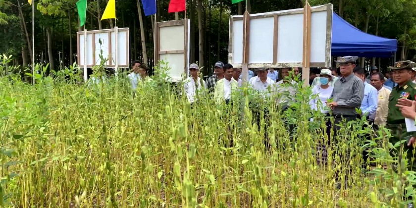 After that, the Chief Minister and party inspected the drilling of Padaung-1 test oil well and instructed the officials to keep the workplace safety and necessaries. They also visited the wild almond tree and sesame plantings in Swetaw village tract.