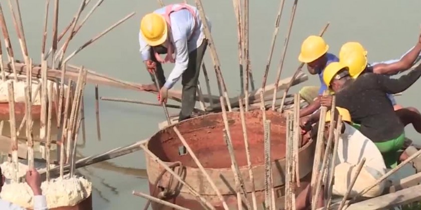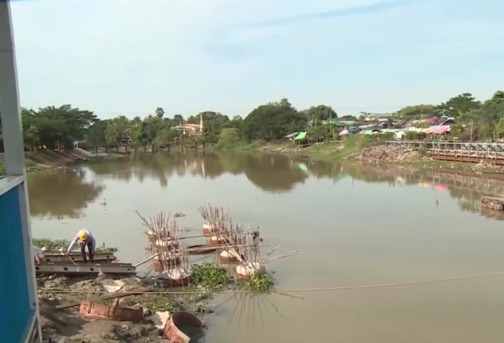Tin Ko Oo, Junior Engineer-2, Department of Bridge, said " The former bridge was an old wooden one built 30 years ago. We are now building a new reinforces concrete (RC) bridge because the old bridge was small and it caused traffic jam in town. The new bridge will have 2 traffic lanes and it will bring smooth transportation. For the current transportation, we built a temporary bridge nearby. Piers of the new bridge are 80 feet high so people can use the water way freely."