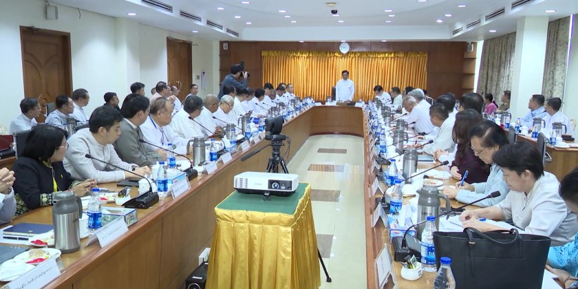 Union Minister for Commerce U Chit Swe met with officials from the Union of Myanmar Federation of Chambers of Commerce and Industry (UMFCCI) and affiliated associations in Yangon on Saturday to discuss ways to improve exports, streamline trade, and address challenges in import/export operations.