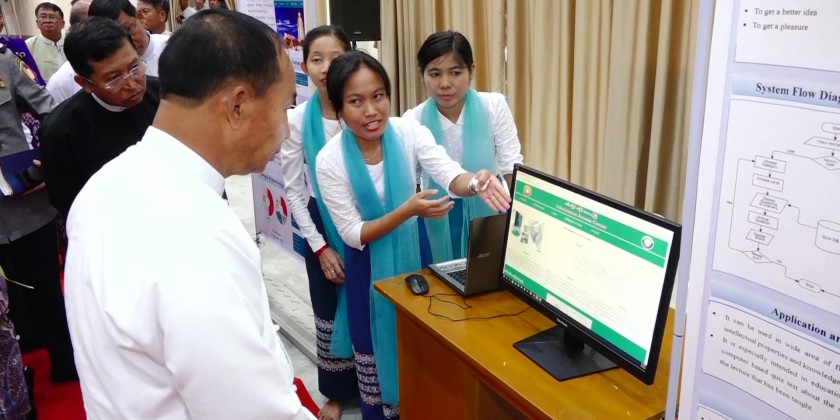 The 6th Projects Exhibition event of the Computer University (Monywa) was held at the graduation hall with the presence of Sagaing Region Chief Minister U Myat Kyaw and many other officials as well as rector and pro- rector, teachers and students.