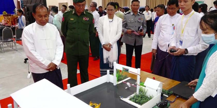 Citizens need to use digital technologies skillfully and need to be alert with the innovations, he added. And then, Sagaing Region Security and Border Affairs Minister Colonel Win Tin Soe provided cash assistance to the rector for the Computer University (Monywa). After that, the region chief minister and officials viewed the 23 projects created by Computer University (Monywa) students and fulfilled their needs.