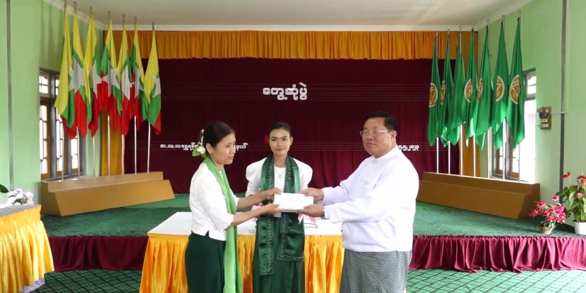Afterward, the SAC member Dr. Kyaw Tun and the Chief Minister U Aung Zaw Aye provided 5 lacks of Kyats each and the school principal and the school committee member accepted the cash assistances, the SAC members gave a speech of conclusion and cordially greeted the teachers and the students.