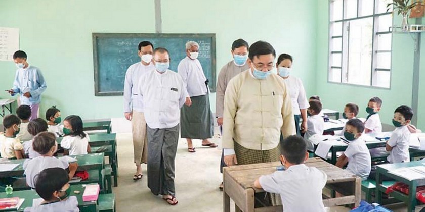 Union Minister for Education Dr. Nyunt Pe and many other officials on Wednesday visited sub basic education high school (KunChanSu), basic education high school (MinKone), basic education high school (NganSut) and basic education middle school (Shwe Nant Thar)  in Ottarathiri Township of Nay Pyi Taw.