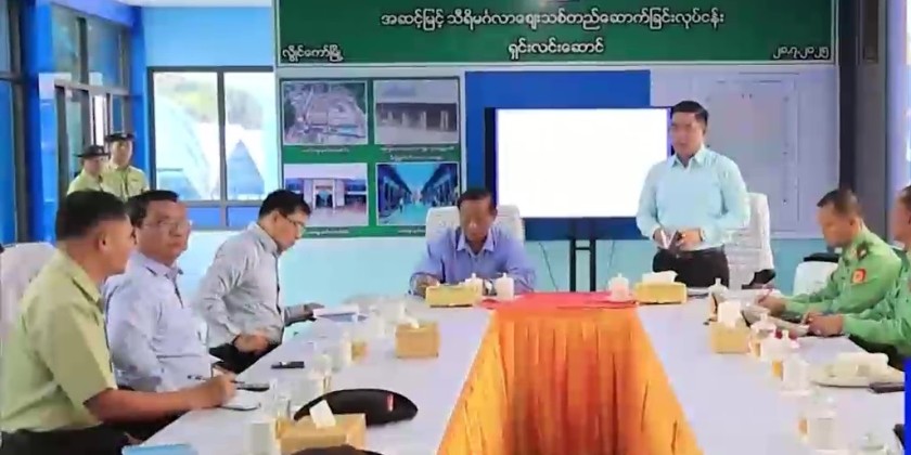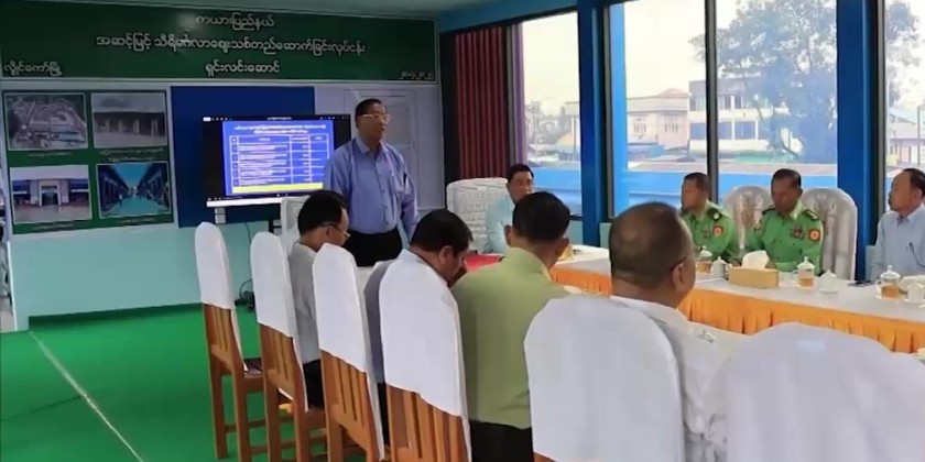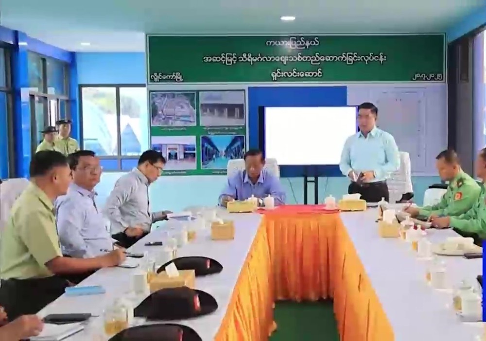 Member of the State Administration Council (SAC) Porel Aung Thein met with the staff and members of the State Development Committee and members of the market affairs board at the new Thiri Mingala Market in Loikaw of Kayah State on Monday.