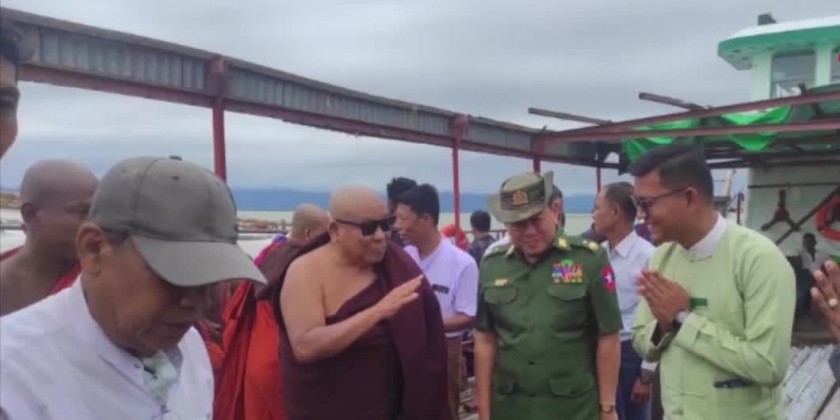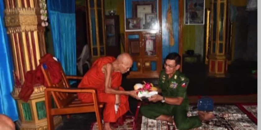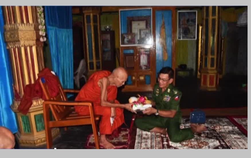 On 27th of June, Lt-Gen Lu Aye from the Office of the Commander-in-Chief (Army), together with the officials, visited the patron Sayadaw of the Nagar PariyattiMonestary in Kyaukphyu, who has recovered from illness and donated cash and offertories. There, he inspected the cleaning of garbage dump in Ceditaung Ward by the staffs of the Township Development Affairs Committee and the local residents and coordinated the needs.
