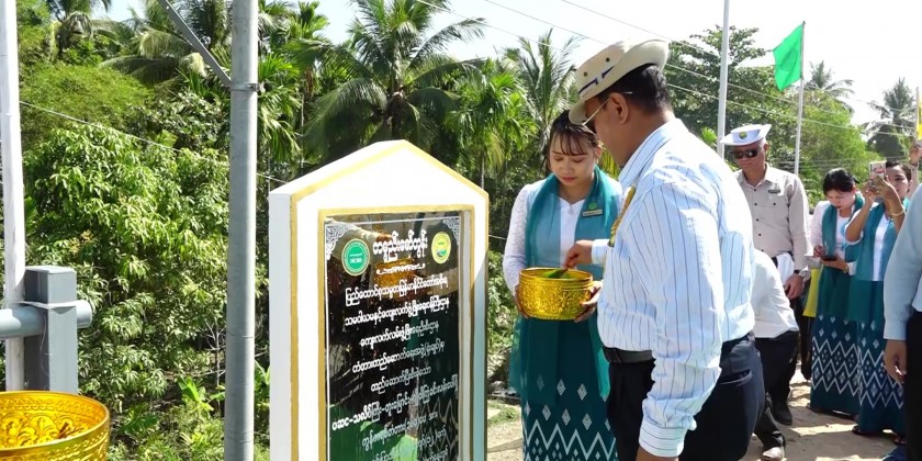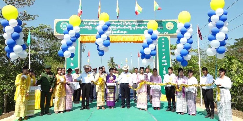 As a gesture of hailing and honoring the 77th Union Day, the opening ceremonies of Thahtaygone-Tarpyat-WaYonSu Village Solar Mini-Grid Electrification Work Process in Kyaiklatt Township, Inter-Village Bridge on ThaLeikKyi-TooMyaung-JowaKyanKhin Inter-Village Road in Pyapon Township and GwayChaungGyi Bridge in the morning on February 6.