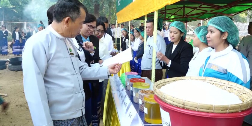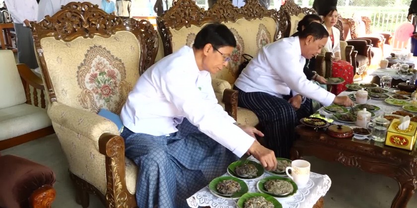 From there, the Union Minister attended the third time Htemane Making Competition of the Ministry staff families honoring the 77th Union Day and supported their happily participation. Then, the Union Minister and officials presented honorary cash for prize winners.