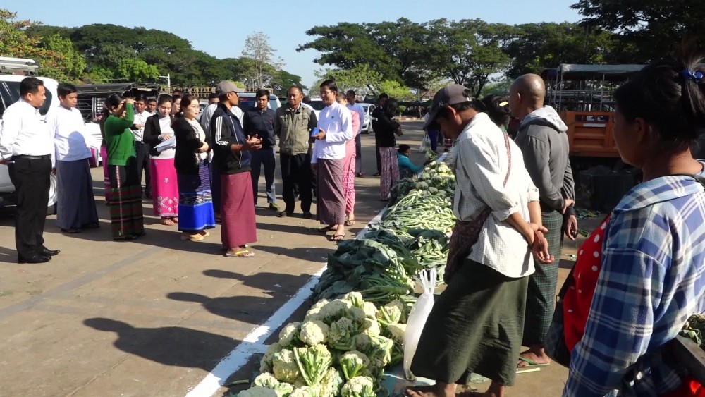 With co-organizing of the Ministry of Cooperatives and Rural Development and Nay Pyi Taw Council, at the designated area in Aharathukha market in Pyinmana Township, selling of cauliflower and brocolli produced by the members of agriculture and General enterprises cooperatives Limited from Gwegyi Village, Nyopin Village-tract of Lewe Township was overseen by the Deputy Minister for Cooperatives and Rural Development U Myint Soe and officials in the morning on 18th January.
