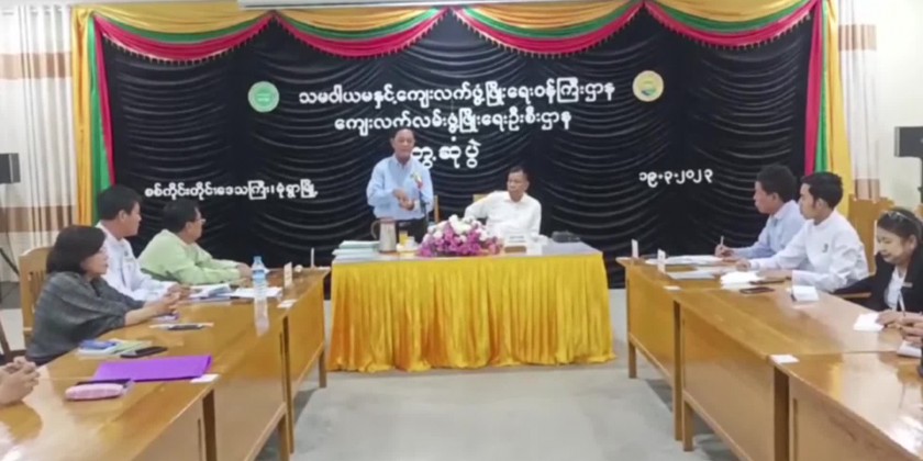 Member of State Administration Council U Maung Ko and the Union Minister for Cooperatives and Rural Development U Hla Moe met with the personnel from the Department of Rural Development at the office of department in Monywa Township, Sagaing Region in the morning on March 19.