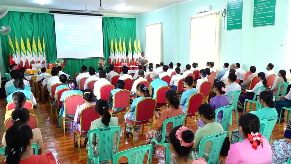 Union Minister for Cooperatives and Rural Development U Hla Moe attended the ceremony of completing basic and refresher training course for sewing skill organized by the Ministry and providing regional development work utilized materials for 5 outstanding trainees who are willing to establish business held at the meeting hall of Nay Pyi Taw Dakkhina District General Administration Department in the morning on 12th October.