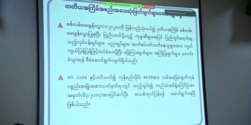 The Development Committee on timber-based enterprises held its coordination meeting 4/2022 on Tuesday in Yangon.