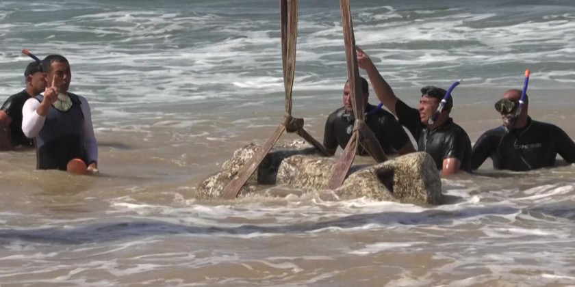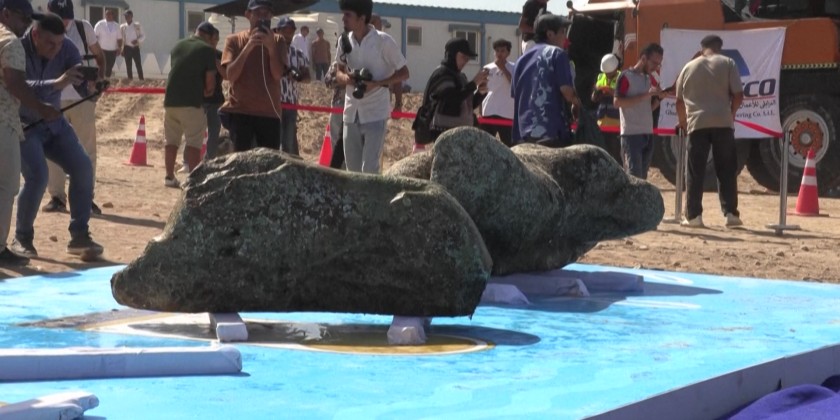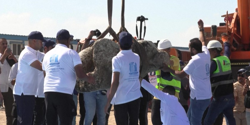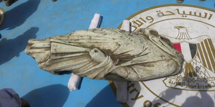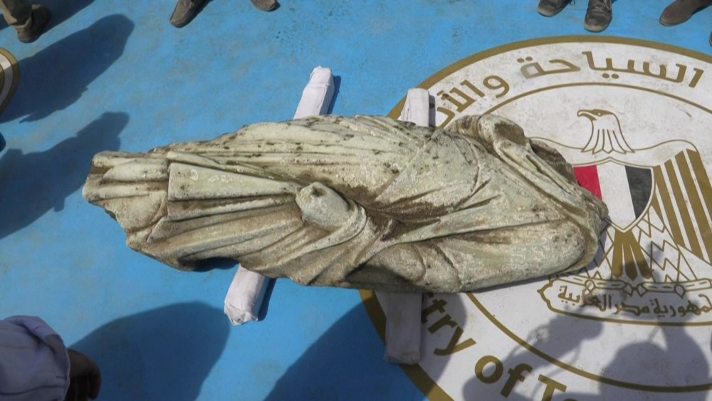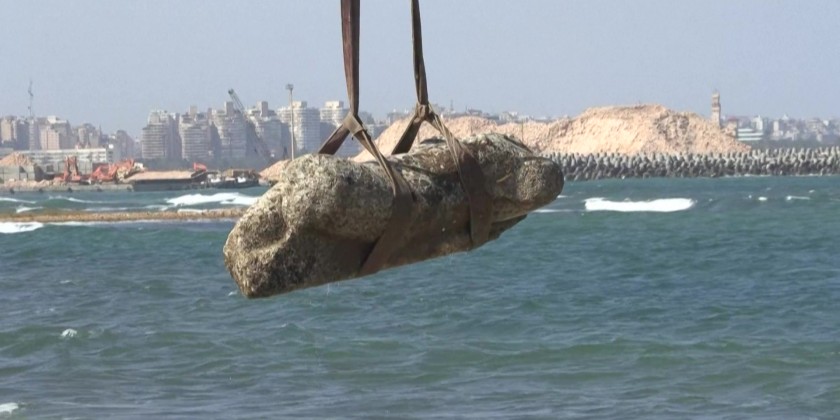 Statues are hoisted by crane from the Mediterranean Sea to the shore at Abu Qir Bay in Alexandria, artefacts from a sunken city unveiled by Egypt dating back to over 2,000 years on Thursday. Authorities said the site, located in the bay, may be an extension of the ancient city of Canopus, a prominent centre during the Ptolemaic dynasty, which ruled Egypt for nearly 300 years, and the Roman Empire, which governed for around 600 years.