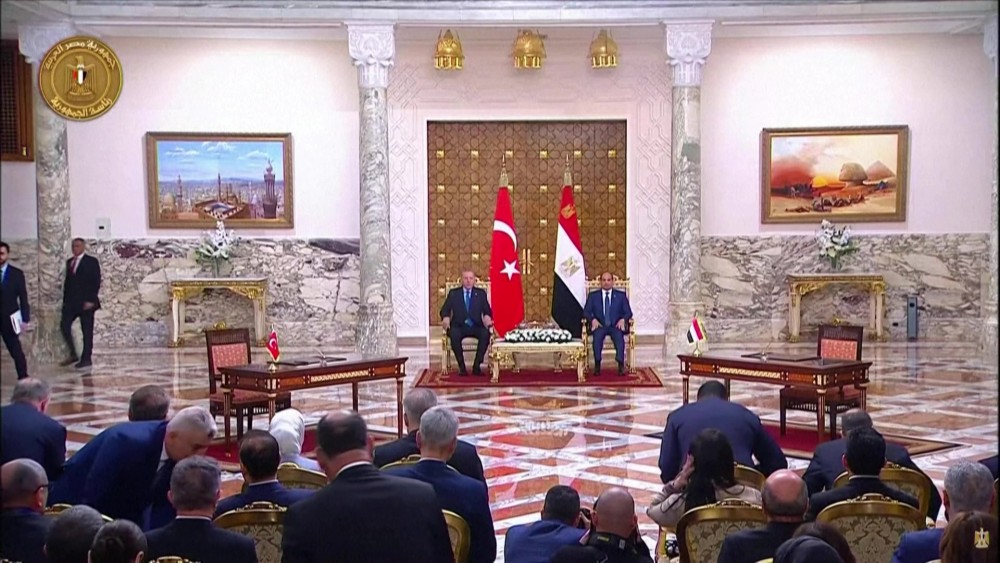 Egyptian President Abdel-Fattah al-Sisi and his Turkish counterpart, Erdogan, held talks on Wednesday in Cairo, aiming to strengthen ties and coordinate on key regional issues, particularly on Gaza.