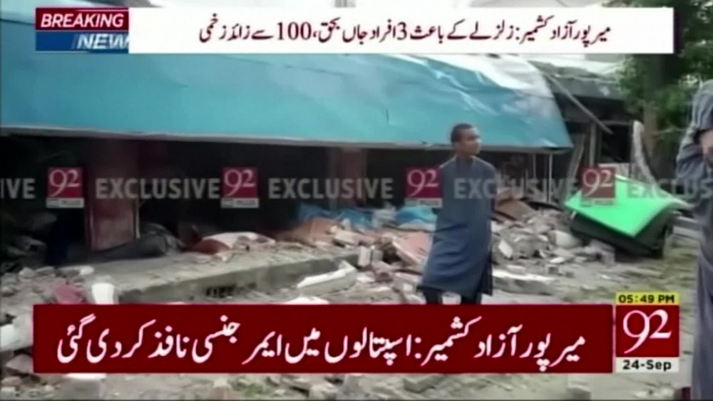 An earthquake of magnitude 5.8 shook northern Pakistan on Tuesday. Government and Police officials said the quake killed eight people and injured 100 people. Footage showed collapsed buildings and cracks in roads large enough to swallow cars in a town on Pakistan's side of the disputed territory of Kashmir near India. The quake struck 14 miles north of Jhelum, Pakistan, at a relatively shallow depth of 10 km, the United States Geological Survey (USGS) reported.