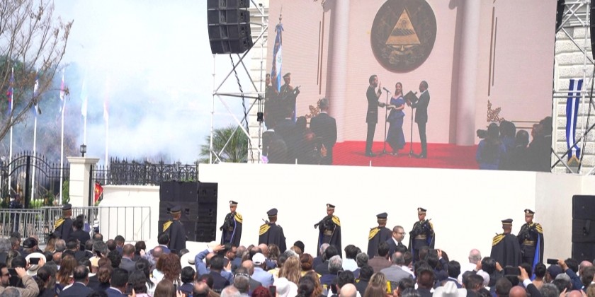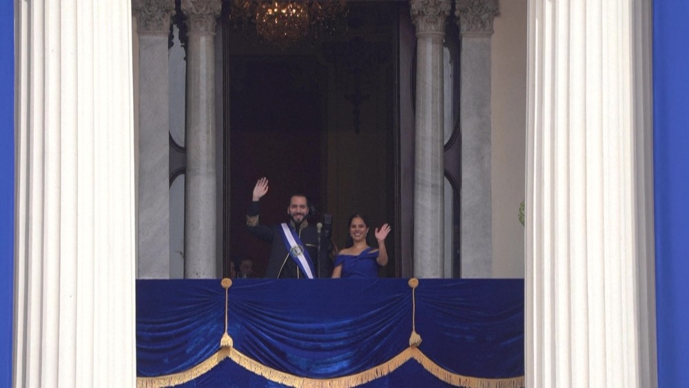 El Salvador's President Nayib Bukele was sworn in for a second term on Saturday at the National Palace in San Salvador. He is set to govern for another five years with near-total control of parliament. He was reelected in February with 85 percent of the vote.