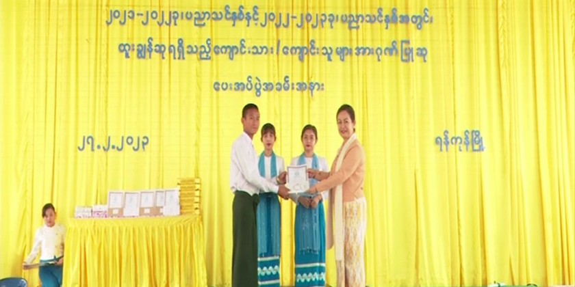 After giving a speech, the Union Minister, the Region Social Affairs Minister and officials presented honourary awards to outstanding students. Students then entertained and the Union Minister presented prizes.