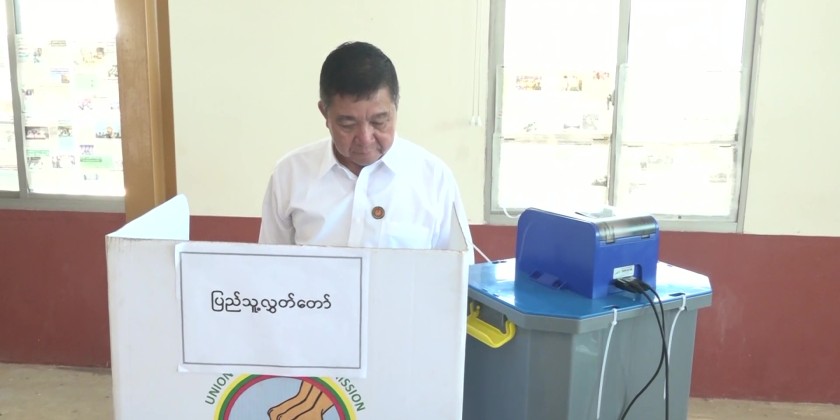 In participation of the 2025 Multi-Party Democracy General Election, Mon State Chief Minister U Aung Kyi Thein casted his vote at NO.1 polling station opened at Kwan Rike  Village in Chaung Sone Township on Sunday.