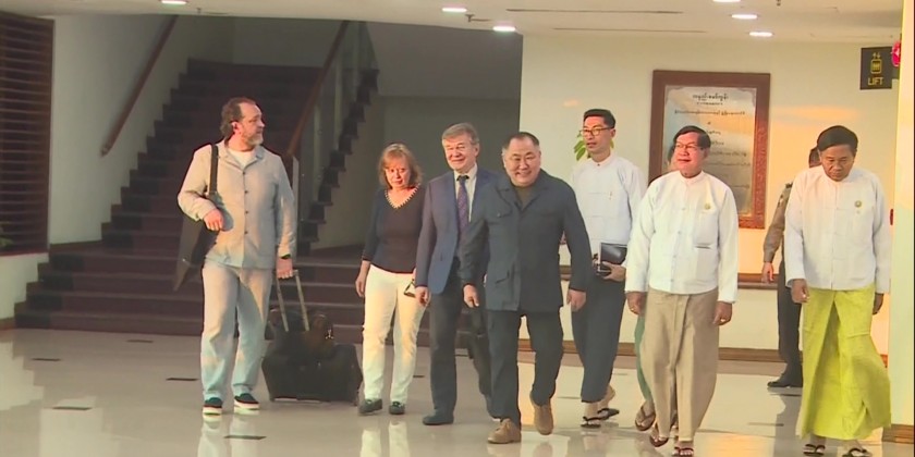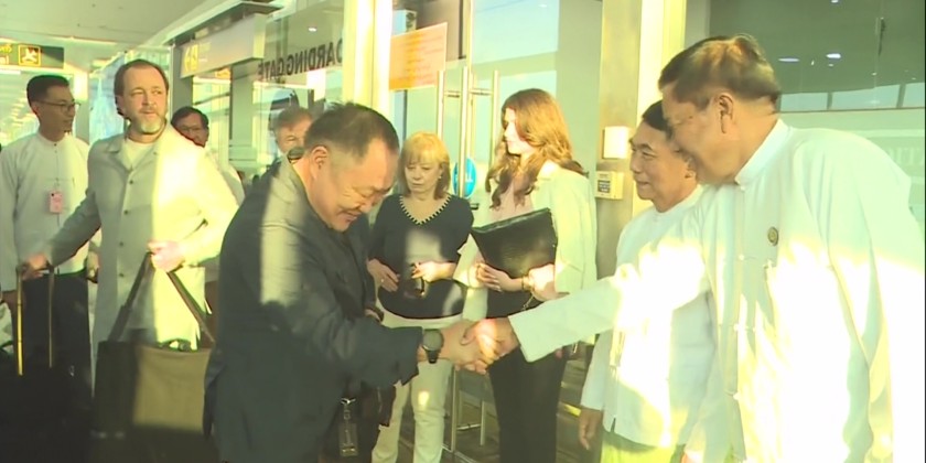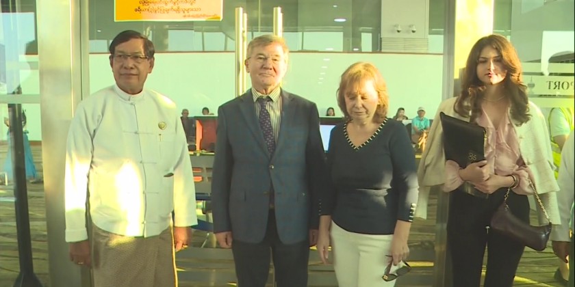 They were welcomed at Yangon International Airport by Yangon Region Chief Minister U Soe Thein and region ministers, Russian Ambassador Mr. Iskander Azizov, and officials from the Union Election Commission, the Yangon Region Election Commission Sub-Office and concerned officials.
