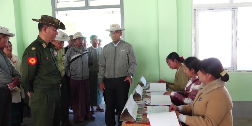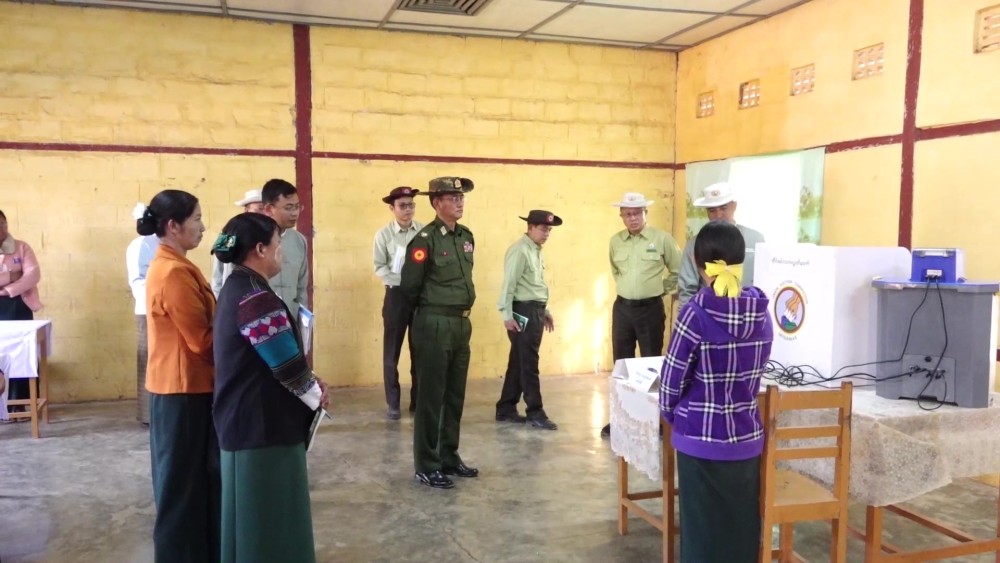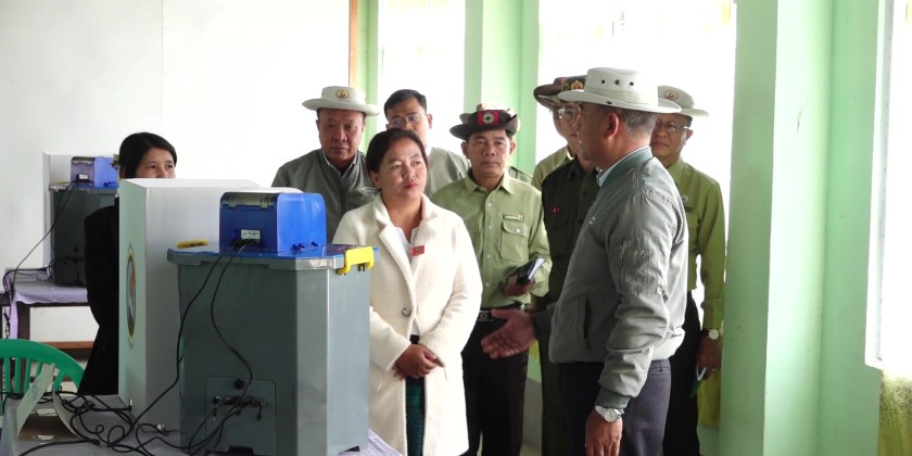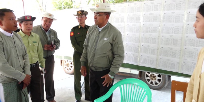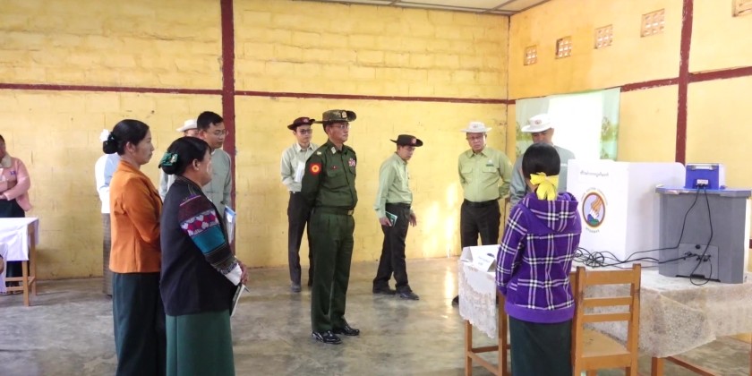 The inspection covered polling stations at basic education schools in Myo Oo (1) Village, Hti Kham Village, and Pin Pyit Model Village.