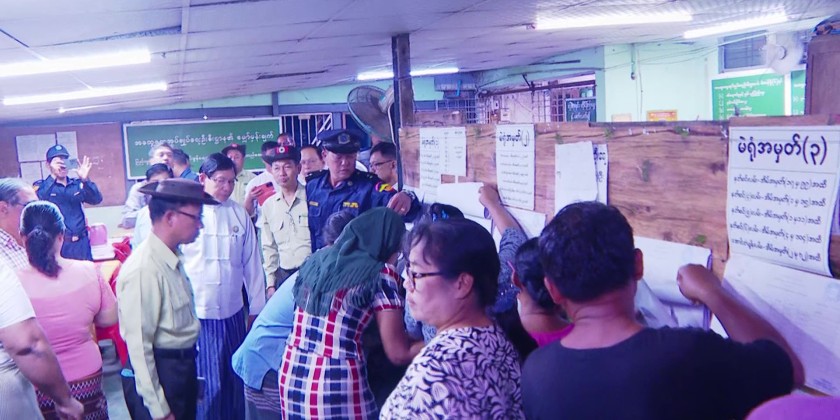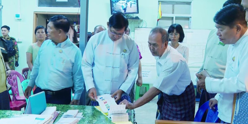 Yangon Region Chief Minister U Soe Thein and members of the regional government inspected the display of the third round of voter lists and the advance voting process in various townships on December 24. They visited Kamayut, Mayangone, Mingaladon, and Thingangyun Townships to view voter list postings and observe advance voting.