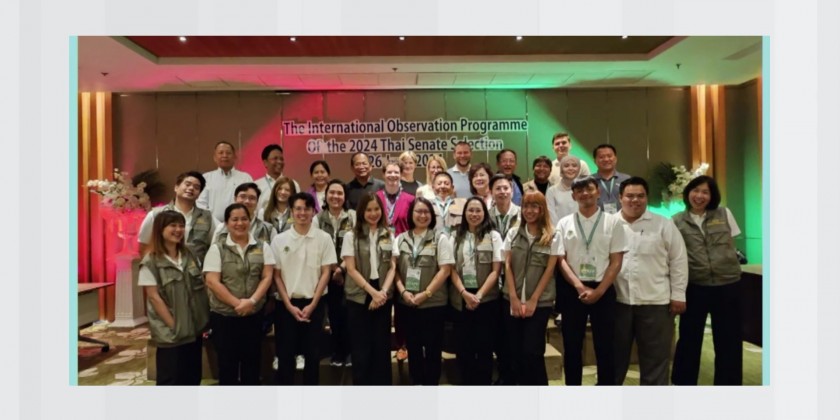During the observation visit, the UEC members attended the ceremony to explain the rules and election offences at the Asawin Grand Convention Hotel on 25 June. On 26 June, they observed the selection process of the National Senate Representatives held at the IMPACT Forum Convention Centre and had the opportunity to exchange views with officials from various organizations.