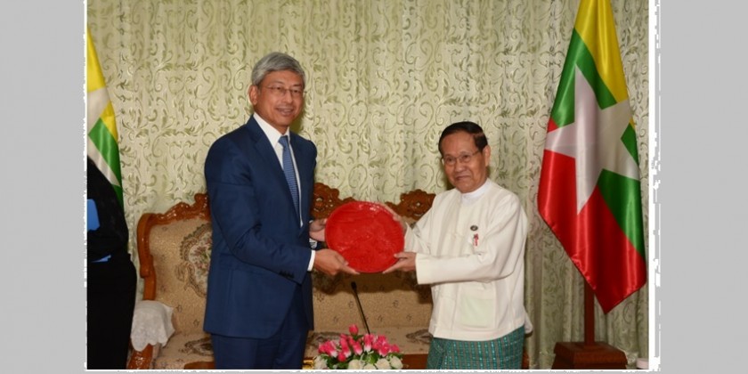 Chairman of the Union Election Commission U Ko Ko received H.E. Mr. Chen Hai, ambassador of the People’s Republic of China to the Republic of the Union of Myanmar and party at the office of UEC in Nay Pyi Taw on Friday.