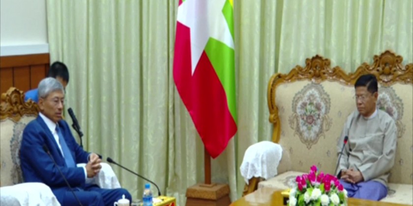 Union Election Commission Chairman U Thein Soe received a delegation led by Chinese Ambassador to Myanmar Mr. Chen Hai at the UEC office in Nay Pyi Taw on Tuesday. On the occasion, the Chinese Ambassador asked about preparatory measures of UEC for holding the election in line with the 5-Point Road Map of the SAC and the conditions on the political parties and to be held a free and fair election peacefully.