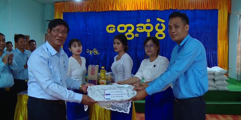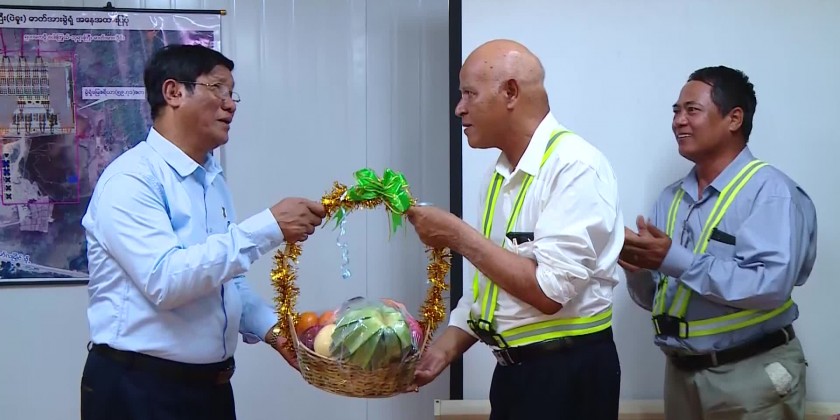 There, the Union Minister also held talks with staff and provided cash assistance and foodstuffs. And, at the 500 KV Pha Yar Gyi power plant construction site near the Mile Post No. 39 on the Yangon-Mandalay Road and heard reports.