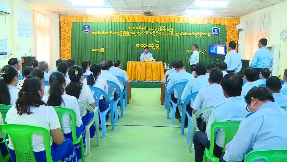 Union Minister for Eletric Power U Thaung Han attended a meeting on distribution of electricity in the Region at the Magway Region Electrical Engineer Office on 31st March.