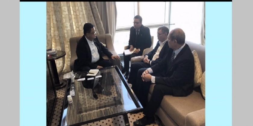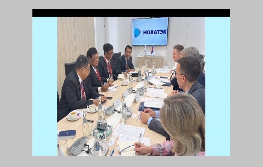 Union Minister for Electric Power U Thaung Han and Union Minister for Energy U Myo Myint Oo who arrived in Moscow to attend the Russian Energy Week Forum, met with the Chairman of the Management Board of Novatek Company on 13th October.